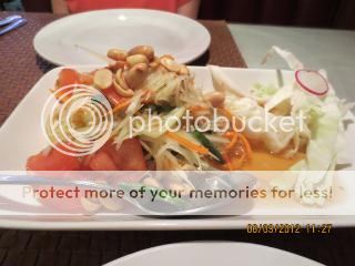 We shared orders of Thai BBQ chicken and basil shrimp. Both dishes were good, but I probably would not reorder the BBQ chicken as there are better versions available. When I tendered my restaurant.com (R.com) gift certificate, the waitress initially refused it, but the manager somewhat begrudgingly approved it. ($16.59, R.com, 3.5 Forks)