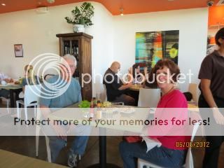After a glass of OJ and grapefruit, we drove to Ronald’s Donuts for our now mandatory apple fritter along with a coffee for Ann. ($2.85, 4 Forks and no crumbs)