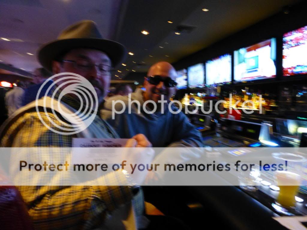 We stopped into the Monte Carlo Pub and had a couple of microbrews before heading over to the MGM to play the Sigma Derby. We each were able to get a seat and starting dumping our quarters into the machine. Three glasses of champagne later my daughter was feeling no pain and we hit a long shot at 113 to 1, so I actually made $13 playing the derby. The machine at the cashiers cage was broken so they had to count out the quarters by hand...had to wait for over ten minutes to get my money, which was irritating, but really pissed my daughter off. She has not had good experiences at MGM (found a rubber band in her food at one of their sit down restaurants a couple of years ago and got sick). I practically had to pick her up to get her away from the cashier's cage while she was expressing her displeasure about the lack customer service.