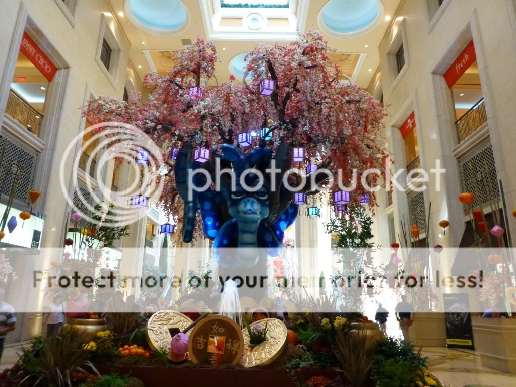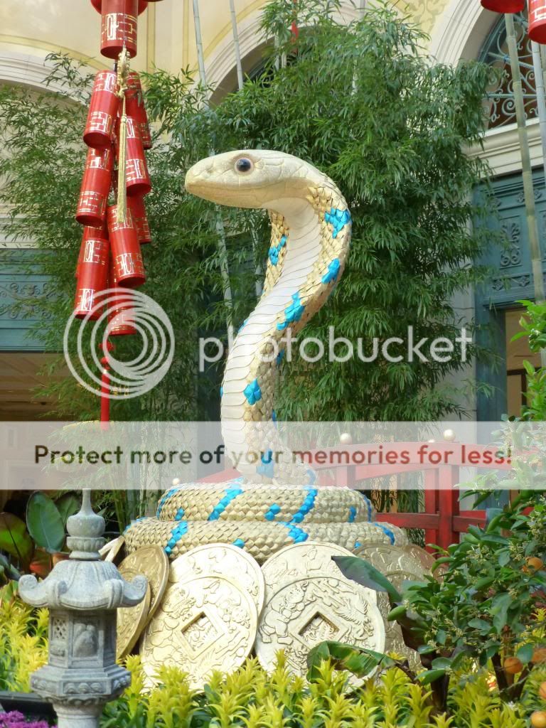 We stopped into the CR and picked up dollar Michelobs and continued heading south. We passed Bill's to find that the doors were closed and locked...so sad. We crossed over LV Blvd and checked out the Chinese New Year display in the conservatory...year of the snake. Next was the Cosmo to have a cocktail and play some VP at one of their bars. Our female bartender made each of us a very tasty cocktail. Jen had a regular gin martini(the bartender used Hendrick's gin) and I had a side car which the bartender made using Hennessey cognac. First rate libations, and since we were playing VP at the bar, there was no charge...take that Steve Wynn! I played JOB (8/5) at the dollar level and kept hitting straights and full houses and then a 4OAK...cashed out with another $100 profit...this is a good day.