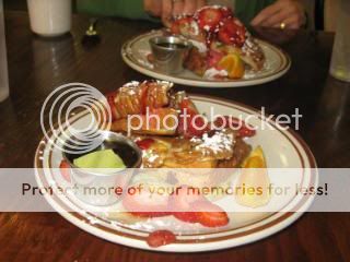 This used to be one of our favorite places for breakfast, but the original owners sent it on the skids before selling out last year. Our waitress took our orders and returned with a miniscule sample of a coffee cake “that just come out of the oven” though it was served at room temperature. We each ordered French toast stuffed with strawberry cream cheese and topped with strawberries. The cream cheese filling was little more than a smear and the French toast itself was pretty ordinary. Based on our experience on this trip and last, I feel the new owner needs to address pricing and quality issues. ($15, Groupon, 2 Forks)