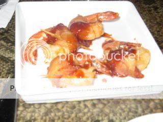 Our first order of tapas included stuffed mushrooms (chorizo, chicken and parmesan cheese) (3 Forks) and bacon wrapped dates (3.5 Forks). Service was extremely slow so our waitress, cum bartender, Michelle gave us a complimentary order of bacon wrapped shrimp with an adobo BBQ sauce as an apology.