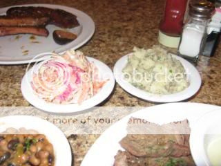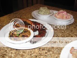 We ordered the 4 meat and 3 sides platter choosing ¼ rack of ribs w/a spicy pineapple sauce, New Mexico chili sausage, tri tip and pork loin.. Our side dishes were Bavarian potato salad, rainbow slaw and spicy beans. The ribs and sausage were excellent while we both felt the pork loin and tri tip were dry. None of the side dishes distinguished themselves. ($12.56, CBS, 2.5 Forks)