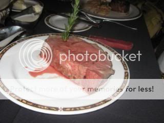 For entrees Ann ordered the 8-ounce filet while I went cowboy style by ordering the 16-ounce prime rib. Both entrees were perfectly cooked to medium rare as requested and included a baked potato with all the fixings. My prime rib, served with au jus and a horseradish sauce, turned out to be a mammoth slab of beef with most of the outer ring of fat and near fat removed. I only wish Max had been with us because it took a Herculean effort for me to finish it alone. Dessert was out of the question. ($10, 2/1 locals coupon, points, 3.5 Forks)