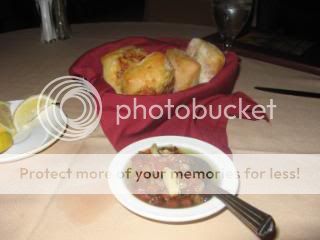 We received warm rolls which we normally refuse, but not tonight because we knew from past experience that they would be accompanied by a small bowl of roasted garlic, chopped tomatoes and EVO.
