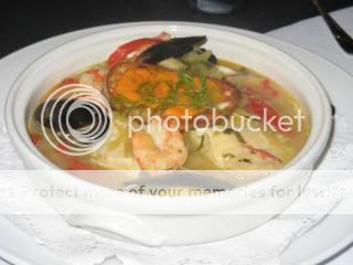 Our appetizer was Golden Cups – sautéed minced pork, chicken and vegetables with a touch of curry served in small pastry cups.