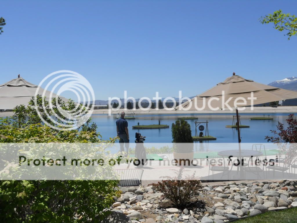 West about five miles from the Atlantis is the Grand Sierra. I’ve told this story before so I won’t go too much into details. But back in my band days (in the mid 80s), we were paid to drive from San Diego to this place, then called the Reno Hilton, given rooms and paid very well for a convention banquet, which after the awards were given out, we were set to play for four hours of dancing. However, everyone seemed to want to go gamble, not dance to a band. After about two hours, we were thanked and said we could go enjoy the place. Anyway, as I approached the back part of the property, I noticed a huge cement pond/lake. I drove around and was surprised to find that this was a golfing range called an aquarange. The little islands you see have prizes that if your ball (I suppose their marked in some way) lands in a barrel on one of the islands, you win a corresponding prize, which according the board, was anything from a free meal, to a free basket of balls, all the way to a trip to Hawaii on the furthest island. The board also had ten names of members who have won that prize. My guess is that at the bottom on this lake, the cement floor is graded in such as way so the balls will eventually roll down to a collecting point—ingenious.