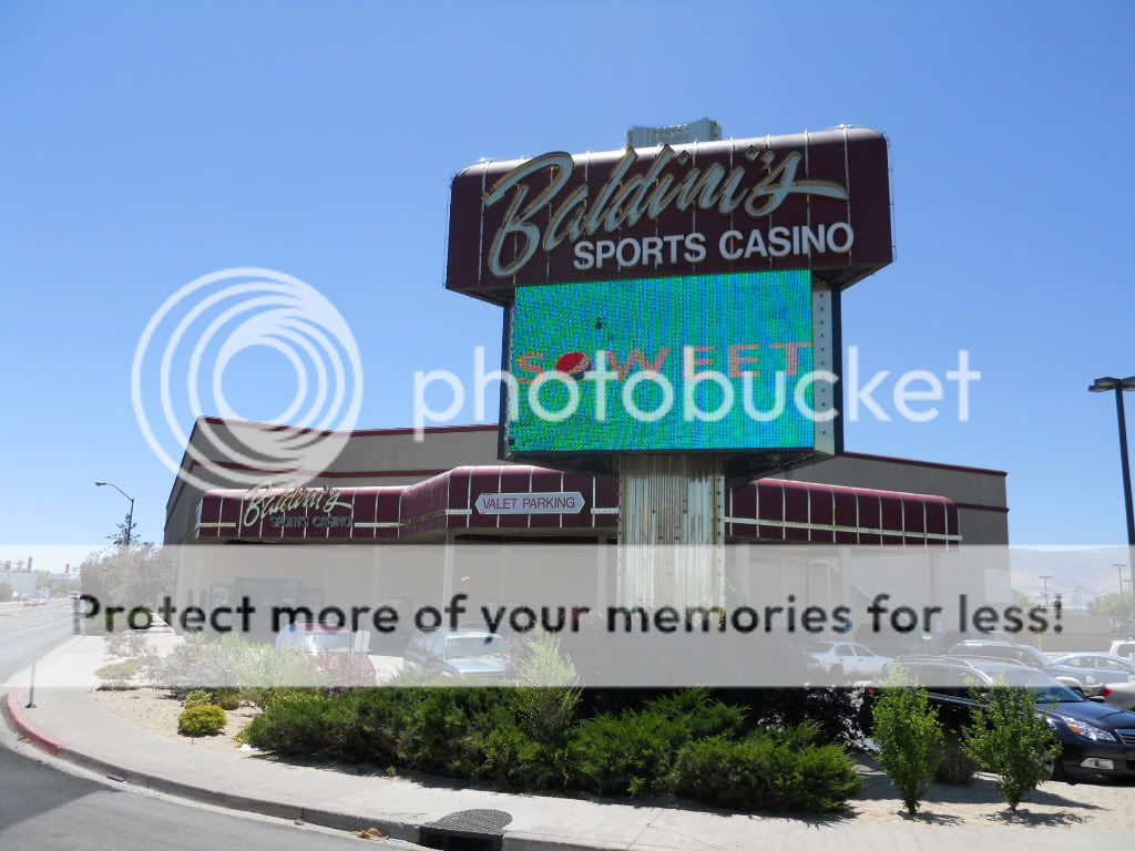 I headed into Sparks when I came to a corner with a place I hadn’t heard of before called Baldini’s Casino. It’s not listed in the American Casinos Guide (I’m finding a quite a few that aren’t), so I made a U-turn and went inside to check it out. I might mention that many times when I want to take the pic of a place for this report, I try my best to get both the front signage with the building behind it. In order to do this, many times I have to walk across the street or to a center medium of the road. This time I walked over to the cemented medium to get this pic. Some wise guy, while I was taking the pic, blew his horn right behind me and scared the hell out of me. I just turned and said, “Good one, you got me.”
