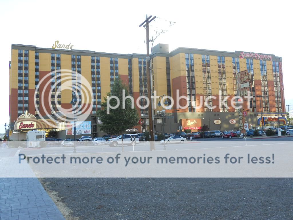 It was after 6 PM and I hadn’t eaten dinner yet. I only had one more place to visit and it was close to Harrahs, so I parked in the parking garage, put my stuff in the room and walked down a few blocks to the Sands Regency. This hotel was the first place I stayed at many years ago on my first trip to Reno. The one thing that stands out here is that their rooms are huge. My sister recently stayed here and said they were the same. The casino is now managed by Terribles and has the usual low paying machines. I was put off by some guy who appeared quite clean, somewhat well dressed, holding a man’s purse who walked up to me and asked me for forty cents. What? Something didn’t ring right, so I just walked away. To make things worse, my blackjack bet was a loser.