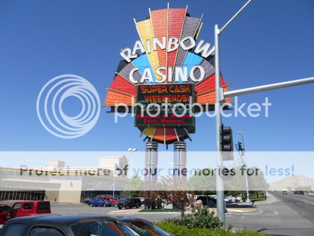 I drove down to the next casino, the Rainbow. Like all the Peppermill properties, this one was full of neon. Their video poker are all short pay, but barely (9/5 Jacks; 8/5 Bonus with all quads paying 150). I walked up to a blackjack table, played my $10 bet—lost again.
