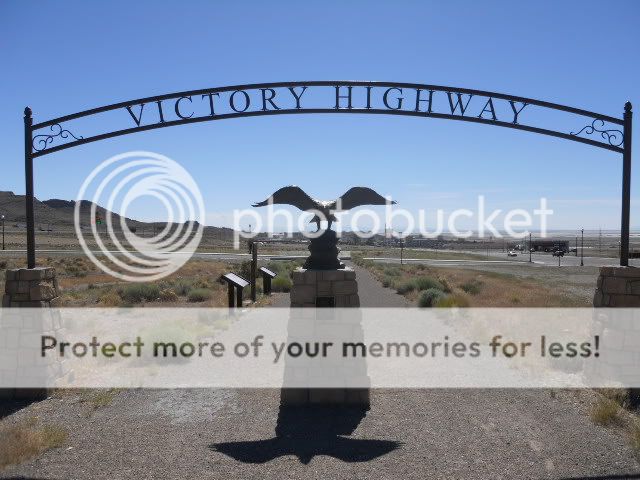 As I drive down the mountain pass into West Wendover, I stopped on the western part of town where you find the Welcome to Wendover statue, and to the right of is the entrance to the Victory Highway, which was the first dirt road connecting New York to San Francisco.