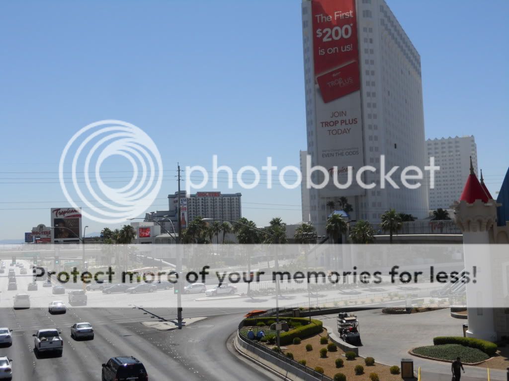 I needed to decide about the pictures. Even though I’m sure most of you have seen pictures of all these places, I still thought I needed to keep the journals up-to-date with the way the hotels look like on the same day I’m there, so the plan was to take the picture of the front of the hotel across the street and then when I was over there, take the picture of the hotels where I was currently at. You can get an idea what time it was when I took the picture simply by the sun’s location at the time. My little point-and-shoot Nikon Coolpix camera’s zoom did a good job. There’s one hotel that I missed: as I got to the end of the trip and at the Tropicana, I still had yet to take a picture of New York, New York. And wouldn’t you it? The last picture I needed for the day, and I ran out of memory on my camera.