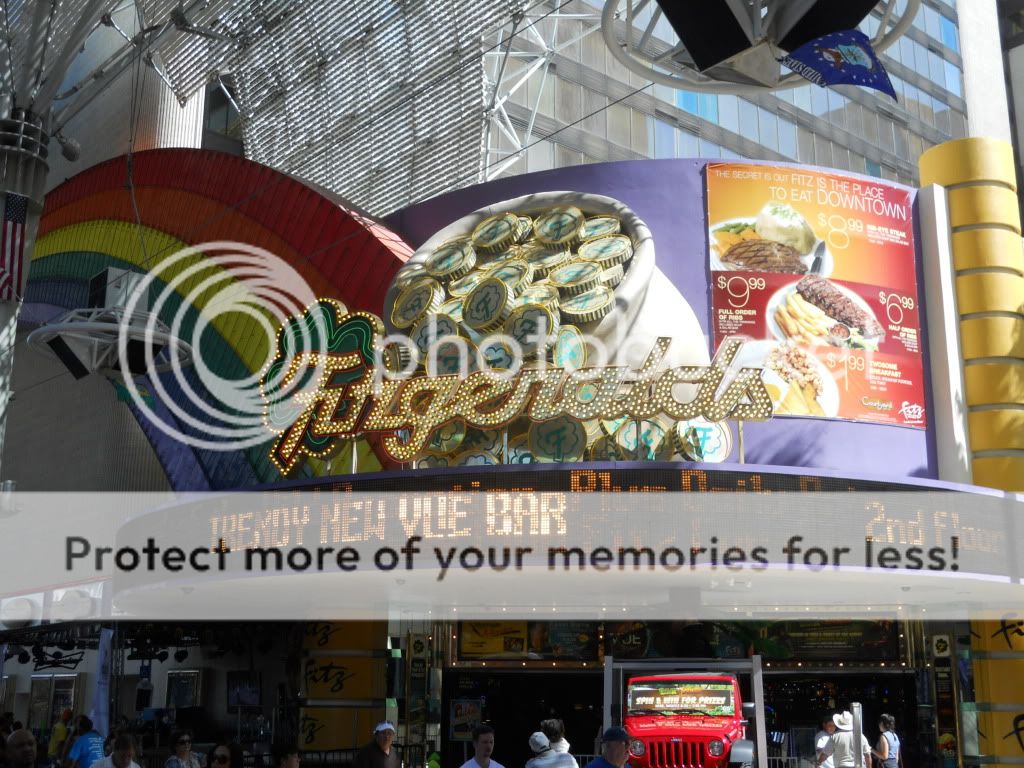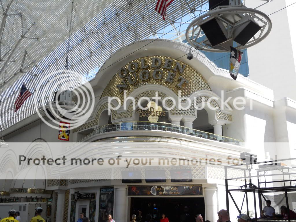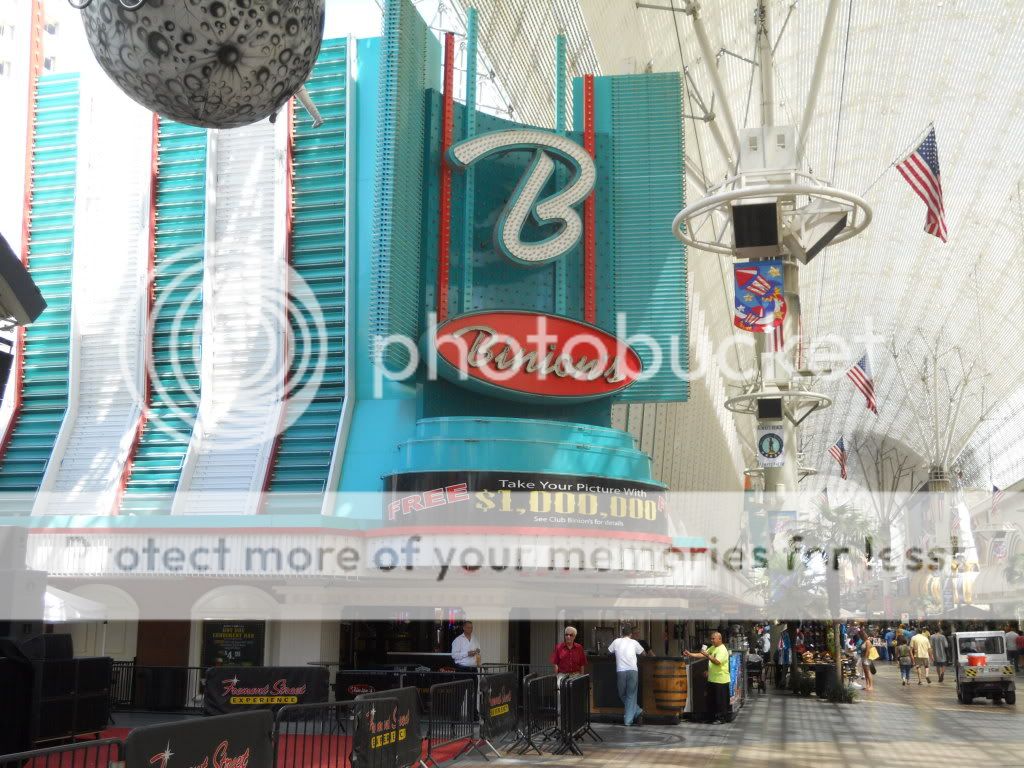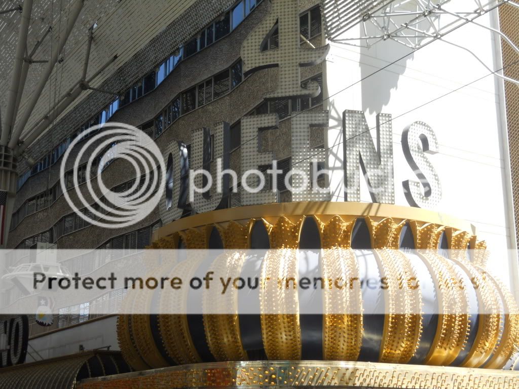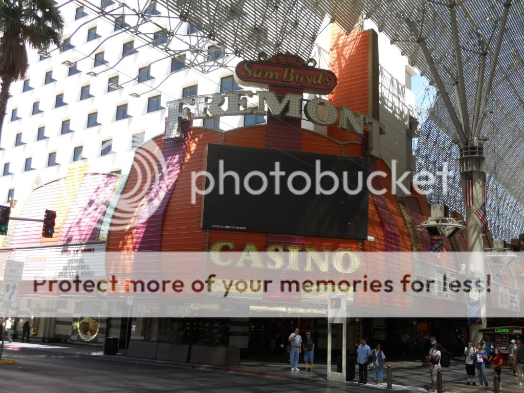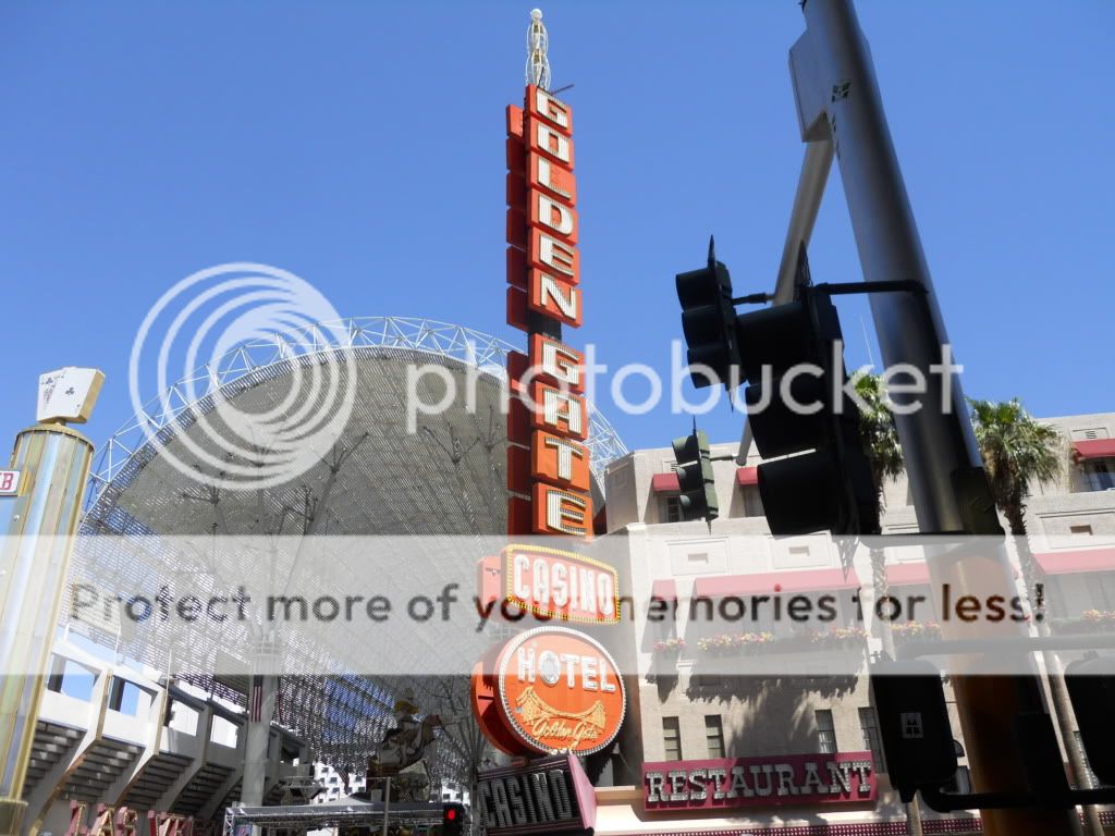 I walked into Freemont Street. The first place was the Golden Gate, the oldest hotel here. Everything is pretty much the same as it always has been except along with the demise of the 99-cent shrimp dish, the grand piano is gone as well. I gave craps a shot, and after laying the odds for a 5 to come up, I shot down $11.