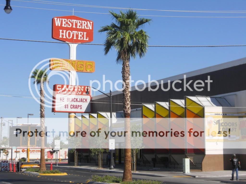 I then took the walk down another couple of blocks to the Western Hotel (now closed) and Casino (still open). The big signs outside boast $1 draft beers and $1 food items. Once inside, you can immediately see that this advertising has paid off because it seems half the homeless in Vegas are all here at the bar and the tables surrounding it drinking their pints of $1 beer. The place smelled terrible, and once I made my blackjack bet and won, I was out of there.