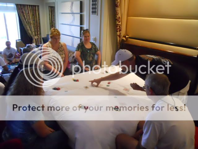 It was 2:45 and I started heading up to the room but never got further than the elevator entrance because the guard wouldn’t let me up without a room key. I called upstairs and asked for someone to come down with a key to let me in. Dave (timberwolf) came down and got me and we finally got up to the room. A few people were running a little late, so the game didn’t get starting until a little before 4 PM.