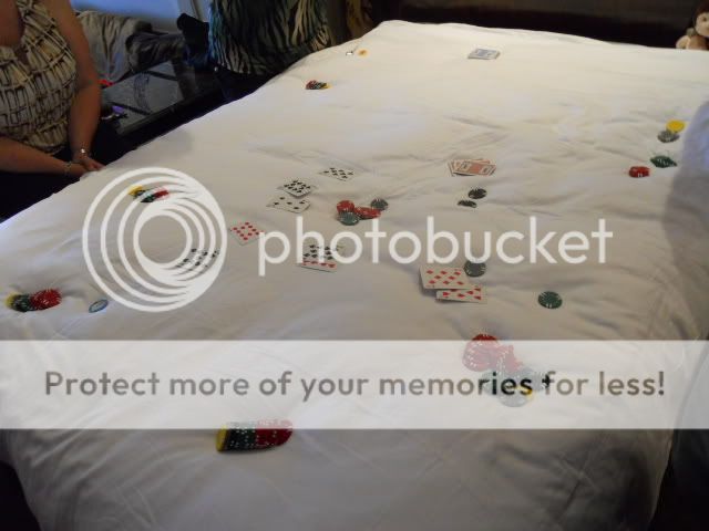 Personally, I hung in there down to the final table (mattress) and became the bubble boy (the person going out just before the money) busting out in 5th place when my suited connectors 6 and 7 of clubs were beat by Rob’s pocket 8s. I didn’t stay to the end so I’ll report the winner in tomorrow’s report. I was supposed to meet Terry and Louise at the M for dinner, but the game went longer than anticipated, so I text him that I’d meet up with them tomorrow instead. After the game finishes, the whole group of ECLVA will be heading to their next event, a midnight bowling tournament (MBT?). Midnight to 3 AM is no longer in my make-up. Many thanks to Dave (timberwolf) for taking the pics during the tournament.
