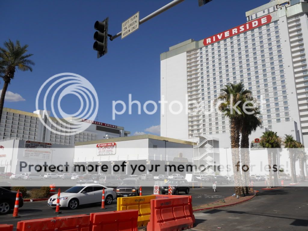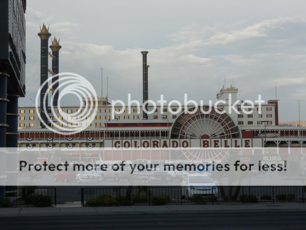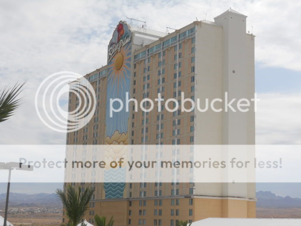 The Colorado Belle is the next casino. This old steamboat casino in its current state has been here since 1987 and was owned by the MGM group, which sold it to the Edgewater (next door) group in 2007. It’s a building designed to look like an old paddle wheel and has never sailed a day. Whenever I come to Laughlin I usually play a hundred through their quarter 8/5 bonus poker machines at the bar because getting room comps here are very easy and I like keeping them coming in just in case I need rooms on any given day for myself or any friends or family. They also send me free play and food comps. Today I have $25 in free play and a $10 food comp. Both of these I can use without having to check into the hotel, which used to be a requirement in the past. People (such as Martin and I) used to check in, use the comps, and never set foot in the rooms, which was a complete waste. Management finally wised up and changed the policy.