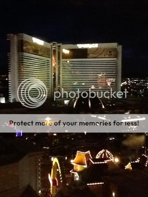 Took a taxi over to Harrahs (the Nugget bellman told him NOT to go the freeway, just head down the strip). Again, not much traffic - never sat thru a light twice. There was a big check in line at Harrahs but a lady directing the lines asked if I already had a Total Rewards card (which I had from the Harrahs at home) and she redirected me to the empty diamond line even though I'm just a platinum. I was put in the Mardi Gras tower, 16th floor, with a view of the strip. Really pretty at night, but the AC units by day. I have to say that staying at Harrahs after the Nugget was a big mistake. The Harrahs hotel in KC is very nice, but the one in Vegas has seen better days. Nothing bad - just old and worn out.