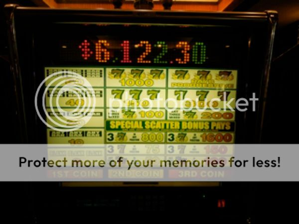 I play JB prog (a bit over 1$083, and seems to always hit by $1199 – under taxable, but neither JMAN or I have yet to hit the Royal on this bank). I do win for the first session in a while, for $45 profit on 200 pts. My dad donates $60 of his $100. He said he will try it later, though. Got a few mixed 7s off the line (only pay 100), but you need them to hit on the line to profit more (200 / 300) payoffs. The 3 jackpot Blazing 7s off the center line still paid 1600 - $400). It was attractive to him.