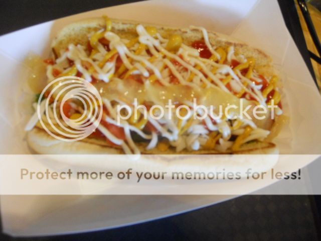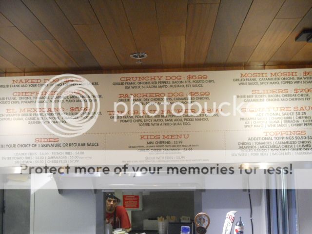 As I was leaving Sam’s Town, I thought I’d take a fast drive downtown where I had read on the LVA that the Container Park had added a gourmet hot dog joint, and I love hot dogs, so I had to check it out. Even though it was really cold outside, the Container Park was really busy. Many families bring their children here to play in the two center parks—a brilliant idea to spark business. The hot dog store is called Cheffinis Gourmet Dogs. There certainly isn’t any cheap dogs here with the lowest bare dog is $4.99. I tried the Cheffinis Dog, which seemed to have everything in the pantry on it including crushed potato chips. It was so large, it was tough to eat, but it was a pretty good dog.