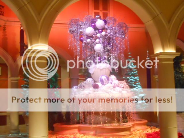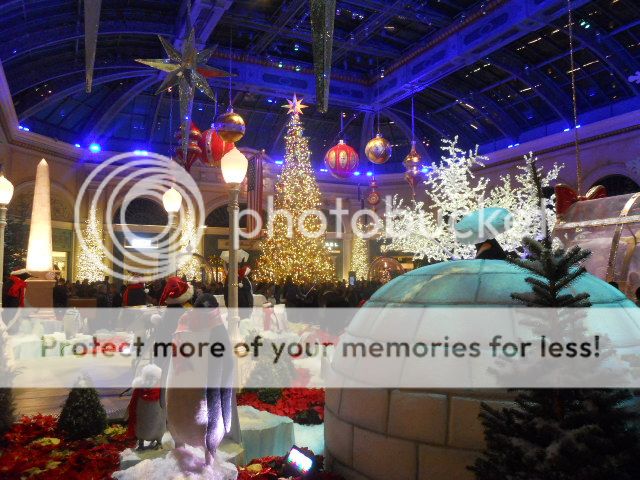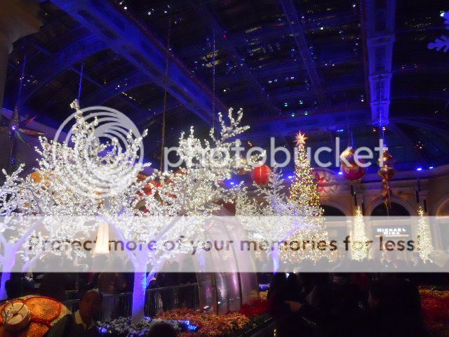 I wanted to get some pics for this report of the Bellagio atrium, so I bundled up and walked over the pedestrian bridge where there was a guy hawking “ice cold water and beer” from a cooler. Really? It’s 32 degrees and this is what you’re selling—and since when can a street vendor sell beer? You can’t believe how crowded Las Vegas is right now. Despite the cold weather, it’s hard to walk anywhere, there are so many people. The Christmas display at Bellagio is impressive. I took my pics and then walked over to the poker room where I was a rail bird for an hour or saw watching people play $2000 pots while listening to their Ipod or playing Words with Friends—surreal. When I play 2 & 4 poker, it’s customary that when you win a pot, you tip the dealer a buck. To my surprise, while watching these huge pots being won my players, they were tipping the dealer only a buck. Occasionally, if it was a really large pot, they’d toss a fiver to the dealer, but not that often—the big gamblers are cheap. Yes, I know pros don’t give away their living on tips, but come on.