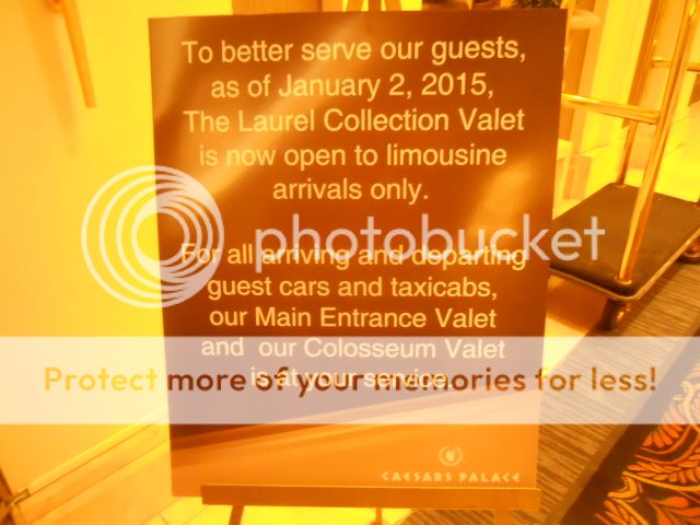 As I picked up my car from the VIP valet, there was a sign saying that this valet would be closed as of January 2. I spoke to one of the attendants about why they were closing it, and he said that ten of the valet attendants would be switched to part time, and three more were let go. So, though the sign says, “to better serve our guests,” once again, it should read, “to better serve our bottom line.” Yet another downgrade of service by Caesars.