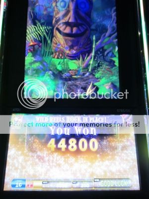 My biggest free play score to date! Too bad, the screen changed as I shot this picture. I wanted to get a shot of the 4 wild reels.