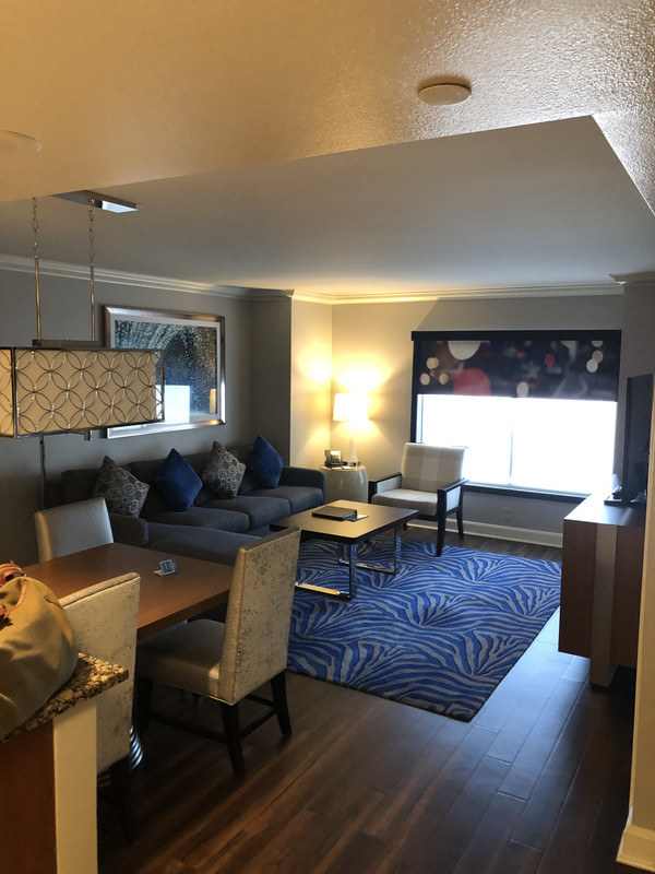 I spent a week at the Hilton Grand Vacations Club on the Boulevard. Say what you will about timeshares but I've become spoiled by having the whole condo-unit thingy with living room, full kitchen and master suite. Its hard to go back to standard hotel rooms once you get used to these.