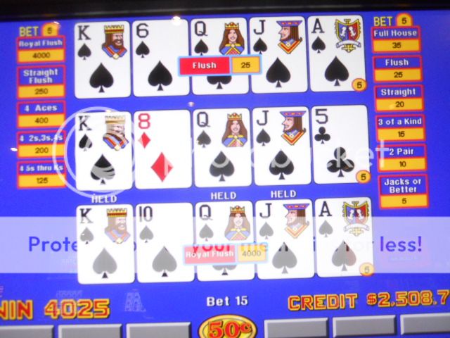 I spent one day playing video poker at Bally’s. I was going to do my play at the Rio, but I was so happy with the rooms they gave me that I felt obligated to give my play here. I sat down at one of my usual 3/5 play machines. I alternate hundreds playing quarter 5-play and then fifty cent 3-play. I was down $600 when things began to turn around and quads finally starting hitting. I was soon up $300 when I hit my first Royal in a long time good for $2,000. This was a needed infusion for my toolbox and certainly made the rest of the day a lot more relaxing.