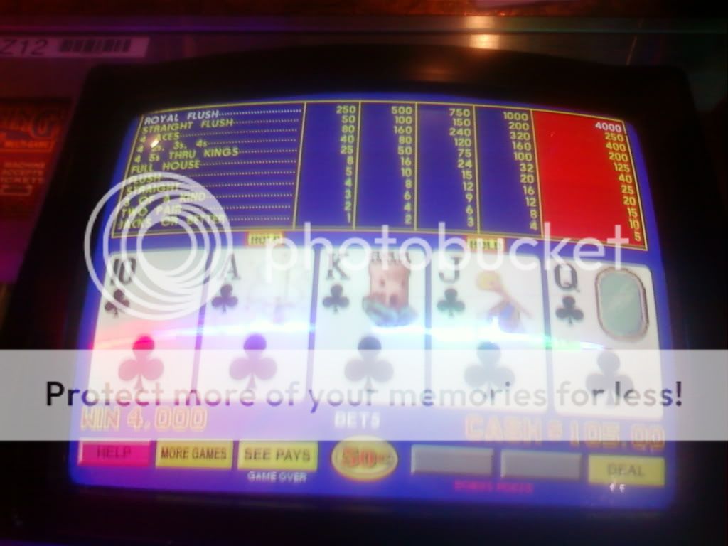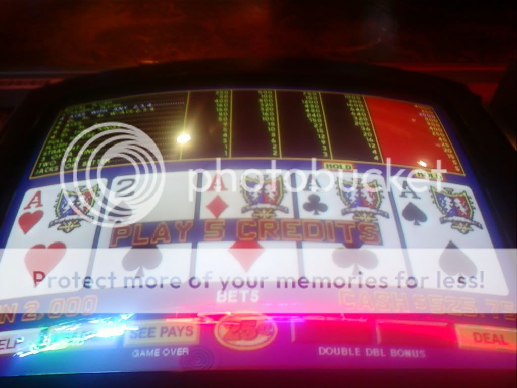 I had many four of a kinds but two really nice hits, both on a DDB machine at the bar. Here was the first, holding two cards and filling in the rest for a sweet $2000 Royal: