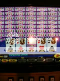 I sat down once again at the nickel 50-play, which is a bit crazy, but I have to admit I enjoy the rush. Again, the only game worth playing is Super Double Bonus. Again, the dealt three-of-a-kinds just weren’t happening nor did I catch any royals. But then I was pleasantly surprised to see four beautiful queens pop up on a deal—600 nickels—times 50 comes to $1500.00 and my second W2G form this year.