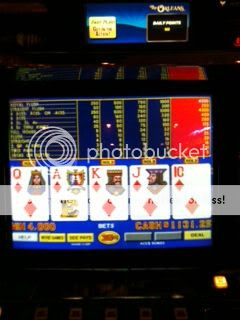 I walked downstairs and the quarter full pay deuces wild coaxed me into playing a hundred (yes, machines can to that). I wasn’t doing well at all on this game, and my meter was down to 0 twice but I caught this or that to keep me playing. I some how got it back to $50 and raised the white flag happy to at least made this back. I still like Sam’s Town, and though we’ve had some issues in the long past, I want to keep my offers coming in for this place, so I was glad to have put up some solid points.