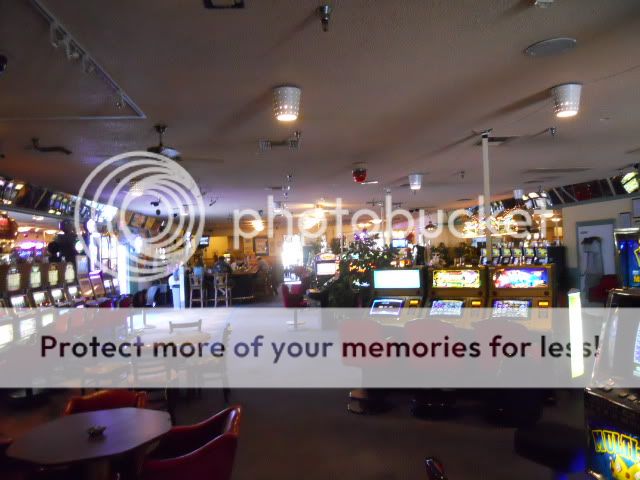 We then walked into the little casino, which does not have a hotel attached to it called the Regency. This little joint is easy to miss as when you drive along Casino Dr. you can’t see the building, only a lone sign gives the passerby any clue that it’s there. There is a small cocktail area with a stage in the corner, which lies empty and next to it a small snack bar/café. There was a lone woman sitting at a table in the far corner. In the casino, there were a couple of people at the bar, and perhaps one or two people playing machines. Their faux Hawaiian motif is a bit tacky. Above the bar there’s a sign that during “Happy Hour” you and 14 friends can buy 15 kamikazes for $25. Those marketing geniuses, what will they come up with next?