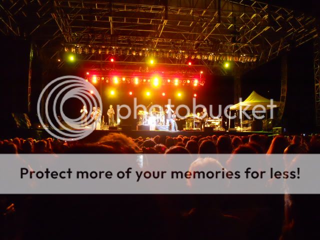 All day we were nervous about the concert because it’s taken place at the outside arena adjacent to the hotel, and it’s been sprinkling off and on all day long. We decided to go, but if it began to rain steadily, we’d leave. Fortunately, with the exception of a stray drop here and there, the entire night went great. The temperature was perfect and though the humidity a little high, everyone enjoyed the show. Huey Lewis and the News was first up (the act I was most anxious to see). They came out and opened with “Heart of Rock and Roll” and it was hit after hit after that. They only played two songs from their latest album, SOULFULNESS, and the band (especially horn section) was top-notch. Huey, at 61, can still belt them out, but on this night, I noticed a little difficulty hitting some of those high notes. The set was an hour long and then, of course, the requisite encore of “Power of Love.” I have to apologize for the pictures. On this night, my camera simply wasn’t up to the distance and the powerful stage lighting. The vast majority of pictures (and I took many) were so out of focus, I had to just delete them. I did manage a couple that was at least viewable.