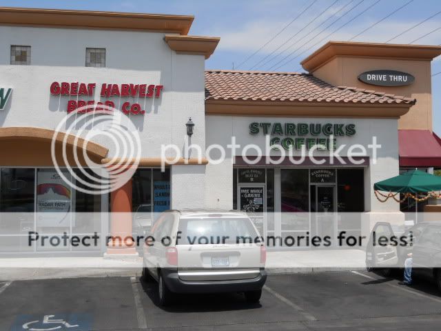 I hadn’t sent in my trip report from yesterday and the plan was to stop at the Starbucks in Henderson once again to send it in. I had also mentioned a bread store that I had bought a sandwich on my trip to Laughlin and that I’d take of picture of it this time around. It’s called the Great Harvest Bread Co. Interestingly, they were closed this afternoon with a sign on the door that simply said, Sold Out of Bread Today.