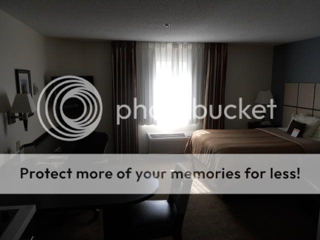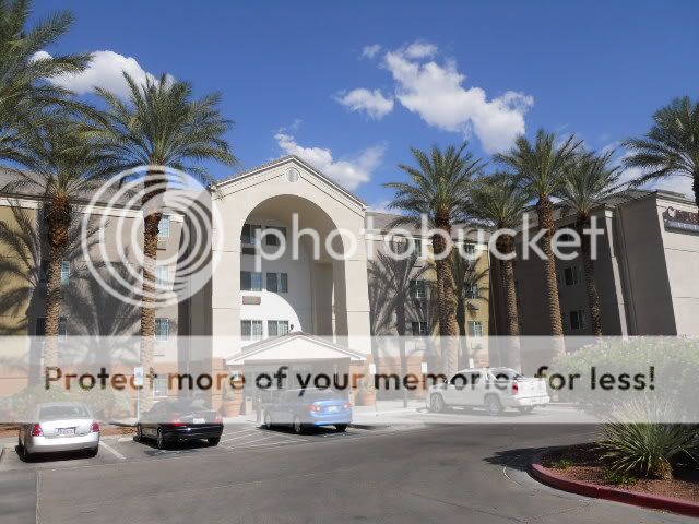 I still hadn’t check into my next place, so I headed out to Paradise Rd. to where my next stop, the Candlewood Suites are located. I’ve never stayed here though I’ve passed it dozens of times as it’s located directly across the street from the Starbucks on Paradise and just a few yards to Terribles Casino. I’m staying here because I used up all my weekend comps this month and I’m a member of the Holiday Inn Express club, and this is a sister property. The rooms are $90 per night (not bad for a weekend) but I get a $75 VISA card rebate when I mail in the receipt (yep, always looking for the bargain). I chose a room on the fourth floor so as to not have anyone above me. The room is not a real suite, but it’s a terrific room nonetheless. As you can see in the picture, there’s a full kitchenette along with the bed, and a very large working station. There’s also a leather recliner and a good size bathroom. In the kitchen are plenty of plates and utensils, a coffee maker with coffee, and a microwave with a package of microwave popcorn ready to be cooked up.