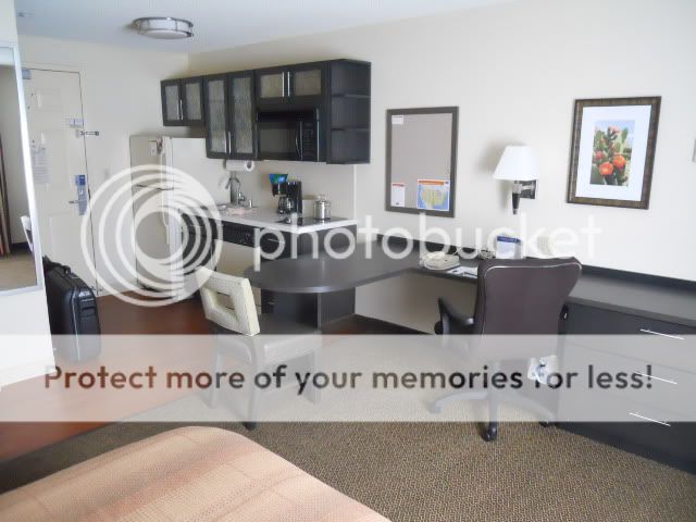 What’s a little different about the place is that it’s what’s known as an Extended Stay Hotel, which means that maid service is only once per week, but you can always get anything you need from the front desk. There’s also a laundry room on each floor, a gym, and a pool. Also what’s interesting is that there is a small store which is based on the honor system. The groceries are very reasonably priced (cans of soda $.50 and remember the $3.75 orange juice at the Las Vegas Hotel gift shop I raged about? The same bottle is here for $1.50), with plenty of frozen items. You take what you want and drop your money into a slot or fill out a form to be billed to your room. There’s no need for an ice machine as all the refrigerators have ice makers in them. I do have one complaint about the room—the bed is a little too firm for my liking, but that’s a small quibble. The TV has all the extended channels included free HBO and the WI-FI here is free as well. This is an excellent bargain play if you have no other hotel comps.