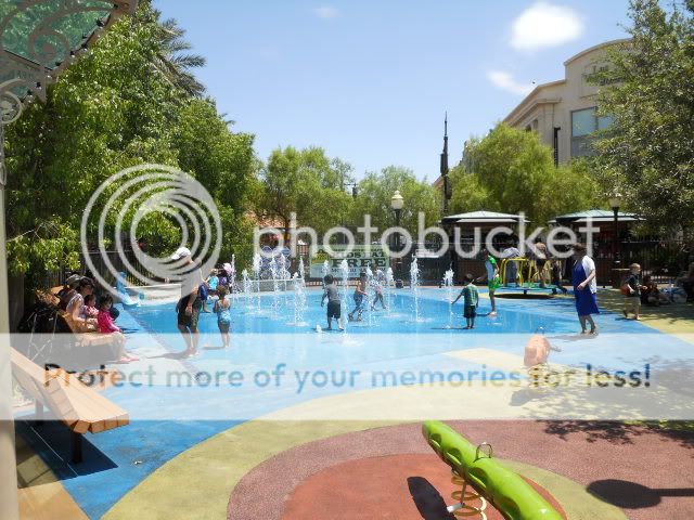 I found a bank of the new Lord of the Rings machines and hoped to continue my lucky streak, but it didn’t work out this time around, so I walked back to Bill’s and drove away headed for the Towne Center where the Rave movie complex is located. I’ve been here many times before because it’s also the location of the Apple store where I’ve bought my last two phones over the years. The Towne Center (located south of the Mandalay Bay next to the Fry’s Electronics building) is really just a shopping center but is set up like a small town. It’s another hot day and once again, the center of the “town” is full of families who bring their children here to play at the water games area and picnic on the grass.