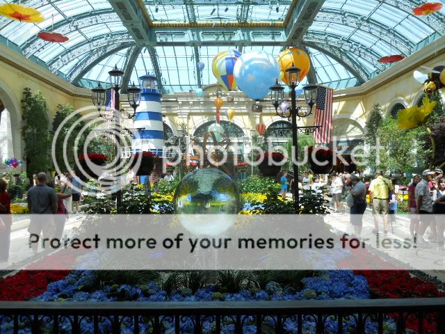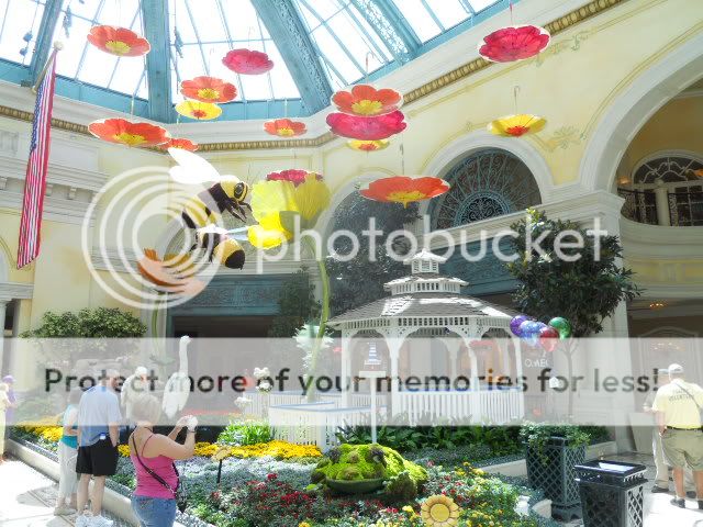 No big plans today other than play tourist. I was going to leave my car in valet for my two days here at Harrahs and just stay here. So, I headed over to the Bellagio to take the requisite pictures of this summer’s atrium. Along the way, I stopped to check the video poker schedules and they remain abysmal. Even at the $5 level, it was 7/5 BP and 8/5 Jacks. I did have $10 in points that I converted into free play, which I used on a Spartacus machine. I won $2. The casino floor is going through what I’m guessing is new carpet replacement because about the third of the casino was curtained off and all the machines were gone. The atrium, as always, looked and smelled wonderful. The Wynn’s, the Cosmopolitan’s, and the Venetian’s can try as they might, but the Bellagio remains the jewel of the Strip.