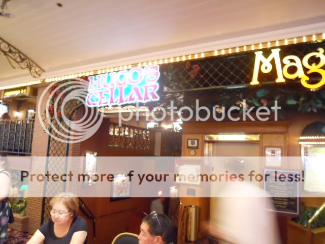 I went back up to my room and just mellowed there for the next couple of hours watching the Olympics (isn’t it amazing all the competitive sports that go in the world that you have no idea even existed?) I was glad to just chill out for a while. It was then time to go downtown where I was meeting Dave and Julie at the Four Queens. Dave has a comp for Hugo’s Cellar (the same comp Terry and Louise had) that was good for $150. Julie doesn’t really like Hugo’s and chose to eat in Magnolia’s, so Dave and I enjoyed the gourmet dinner and atmosphere of “the cellar.” This is my second time this trip in here, both times at the invite of friends I met on the LVA board. I might be having a lousy gambling trip, but I’m rich with good friends. Dave went for the three-piece seafood and I had the Veal Oscar. As always, the salad was a meal in itself and the food excellent. Because we had plenty left over for the comp, we also had a banana foster for desert—yum! We finally waddled out of the place. We found Julie at the 10/4 progressives hoping to do what Terry had done just 9 days ago—hit that royal.