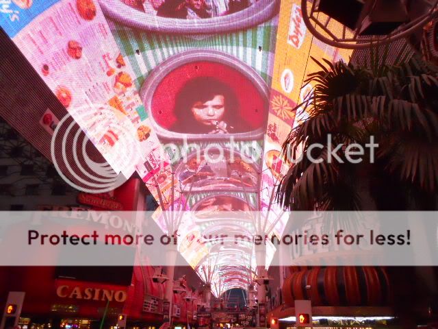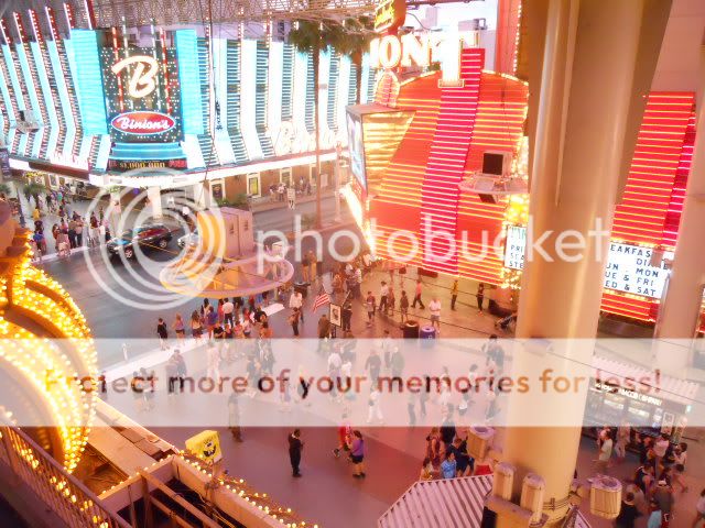 Dave wanted to show me their room in the Four Queens. They request a room under the Fremont canopy, which most wouldn’t like because of the volume of the shows. But Dave says they prefer it because they never go to bed until the shows are over anyway and they enjoy the view from their window. The room, like all at the Four Queens, is old and is very small (think Motel 6), but they have added new furniture and a flat screen TV. Dave opened the window and he was right. You can hang out the window and be right there looking down on Fremont. Below us were Captain Sparrow and Mr. T. posing for pics and taking tips. It’s just amazing—go to a costume shop, rent a costume, stand on Fremont and make money.