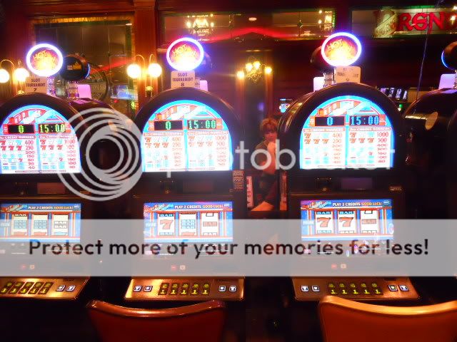 I headed down to the new slot tournament area. I picked a ping-ball out of a basket and my machine number was 8. I waited for our 10:00 appointment time. The machines here are still the classic Red, White, Blue 7s but these are not the mechanical types, but rather video machines.