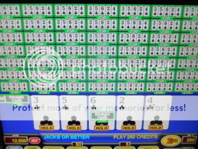 As I was driving, I went by the Palms and wondered if I should stop in and swipe my card as it’s Senior Day again. I didn’t need to check in for another couple of hours, so I sat down at the 9/6 Jacks 50-play for two cents again. I put in a hundred. Once again, I was going through a session of not getting any three-of-a-kinds being dealt to me and I was beginning to get frustrated. Suddenly that all went away when I was dealt a straight flush. At the 2-cent level, this is a $250 win. Sweet!