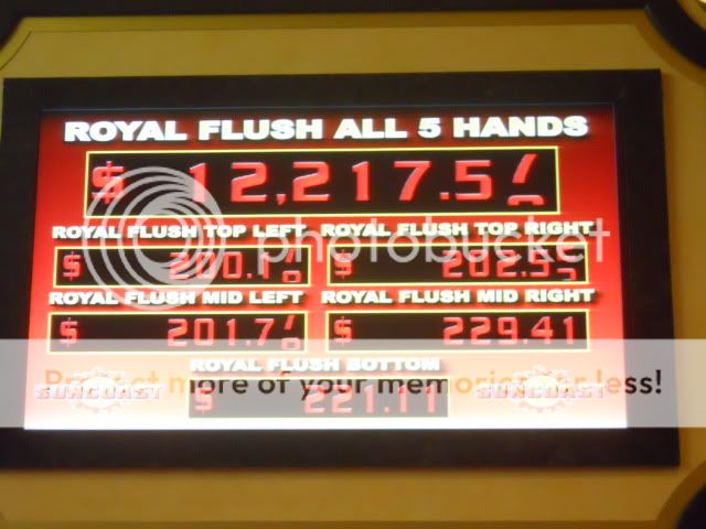 I checked into to the Suncoast and was given room 615, very close to where I was last time. I took a pic of the view of the golf course, but it’s pretty much the same. I headed down to the casino to go after the 5-play nickel machines where the dealt royal has gone up over the $12,000 mark. I’ve never seen it this high. I have been dealt a royal on a couple of occasions, so anything is possible.