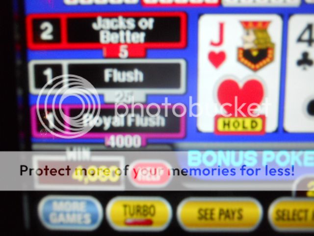 It was time to pack up and leave the Silverton. I’m going to miss that mattress. I took all my things to the car and then came back to the casino to put in enough play for another pull-tab. Though I was burned yesterday by the 100-play 8/5 bonus machine, I was now buoyed with yesterday’s poker win to start out at 25 games at a time. The video poker gods were nice to me as I caught a Royal (in hearts no less) holding three for a $200 win.