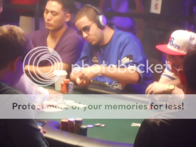 Last year's Main Even Champion Greg Merson, still in it and scaring the bejesus of everyone around him