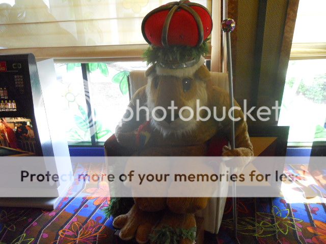I had a little time to kill, so I had a seafood cocktail at the garage snack bar once again and played $5 in Keno breaking even. While I was playing, I looked to my left and saw a large stuffed animal dressed like a king sitting between some machines. It drew my attention because it seemed to have no reason to be there. It’s not a children’s area, there were no themed machines it might be promoting, and it just seemed totally out of place. I suppose I’ll never understand casino marketing.