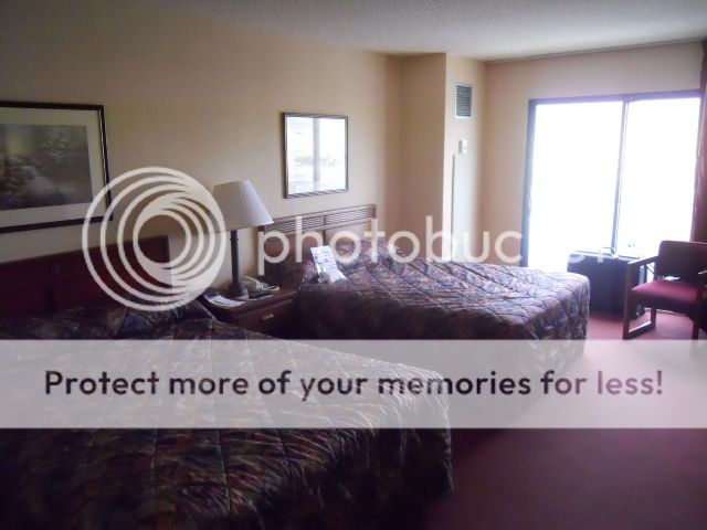 I took my things up to the room and it had just been finished. The Riverside really does need to remodel soon. The tube TVs and stiff mattresses have got to go. The doors at the Riverside are the heaviest doors I’ve ever encountered. It takes two hands and a shoulder to get them open—they’re all like this—made of solid something or other. So, here are the obligatory pictures of the room and the view.