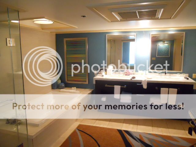 Bathroom area of the suite at the Mirage. Not pictured the toilet/bidet room and walk in closet