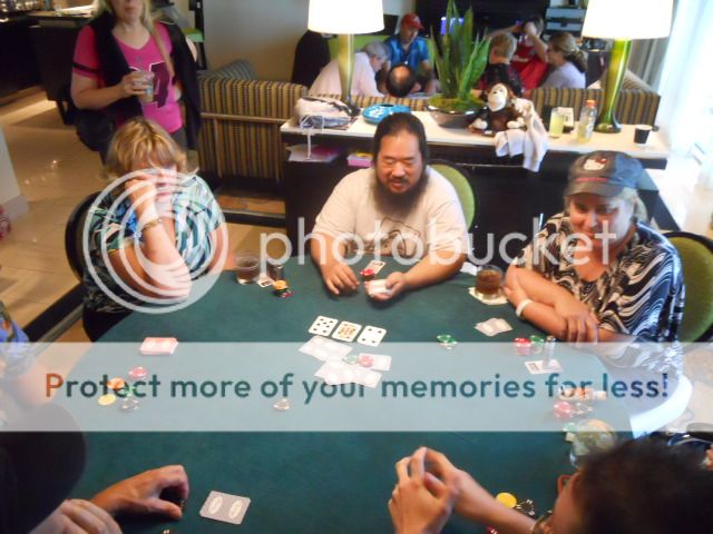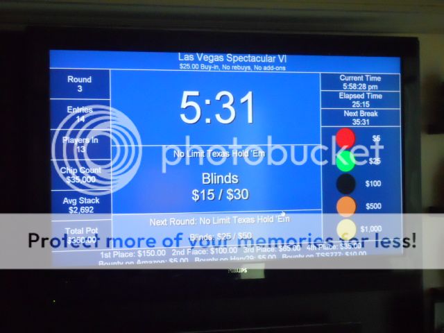 My tenure this year was quick as I was the third man out (fourteen played). My Ace/Queen with on Ace out on the flop couldn’t hold up to Harv’s Ace/King. I don’t know who end up winning this year, but I’ll report that back to you in tomorrow’s report.